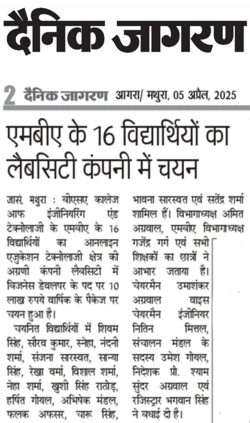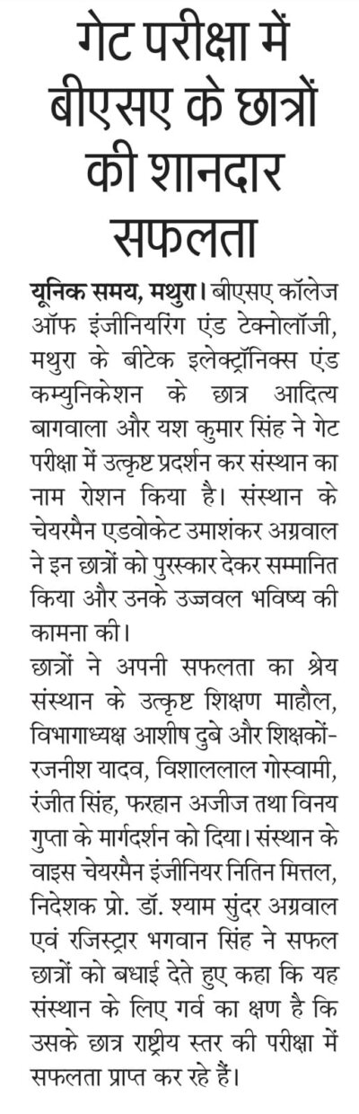 BSA COLLEGE OF ENGINEERING & TECHNOLOGY