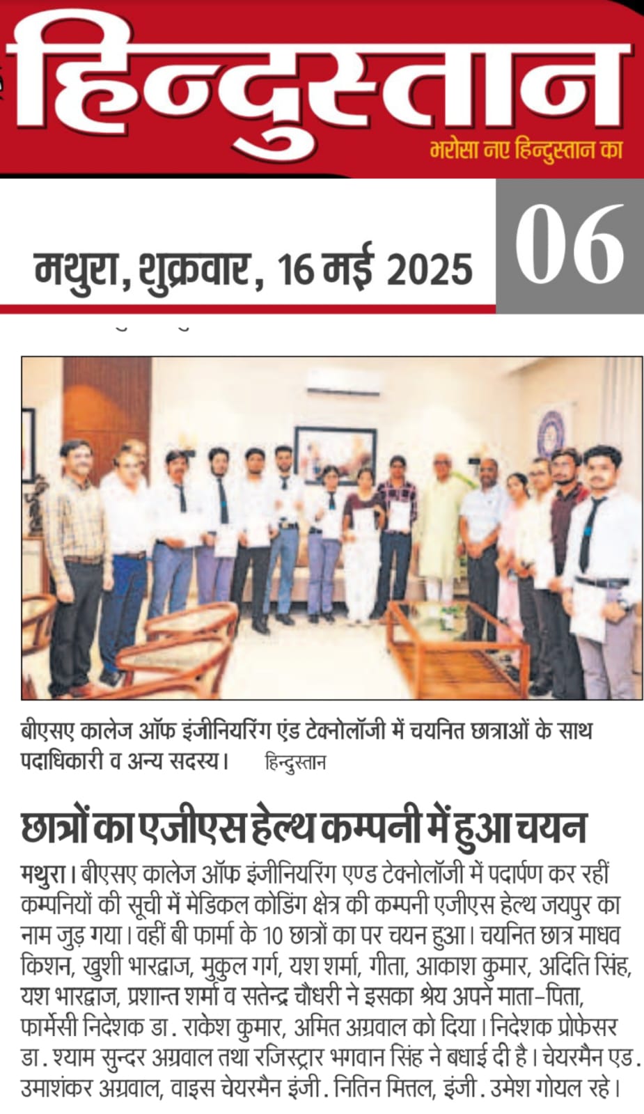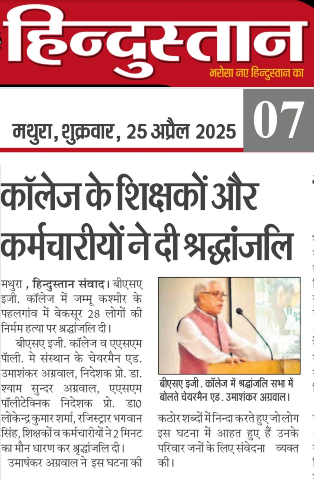 PUNJAB NATIONAL BANK, BRANCH-BSA COLLEGE MATHURA